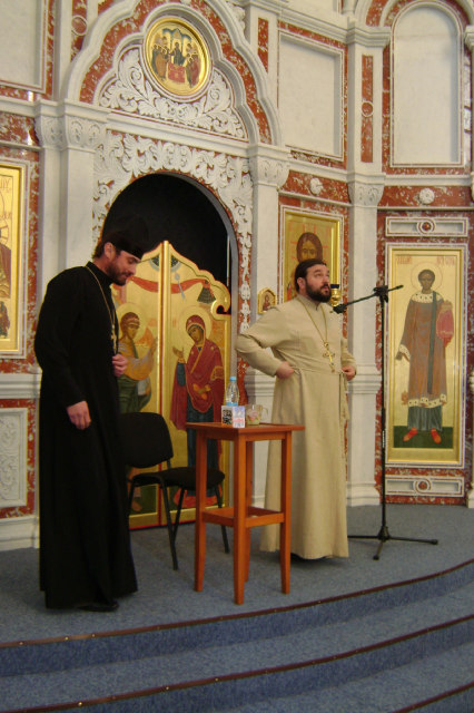 В конце беседы отец Андрей отвечал на вопросы присутствующих, их оказалось огромное количество, что даже пришлось уже священнику просить перестать писать записки, потому что мы бы до полуночи не разошлись...