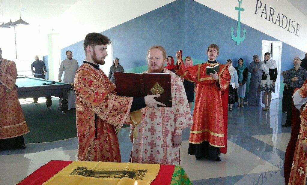 Утром в пятницу служили Литургию, прямо в холе конференц-зала — где окна на три стороны света, и простор, и свежий воздух. Почти все участники в священном сане сослужили владыке Ионе. Те, кто не служили, пели в хоре.