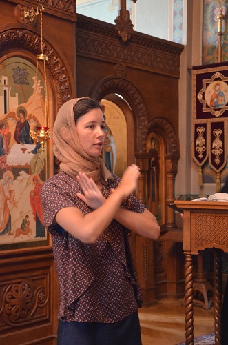 Второй день форума объединил всех участников у Евхаристической чаши. На Литургии в Свято-Троицком Ионинском монастыре многие причастились Святых Христовых тайн. Уже перед началом богослужения некоторые с нетерпением спрашивали переводчиков: «Где о. Григорий? Мы хотим у него исповедоваться!» Духовник Киевской общины глухих , о. Григорий Крыжановский – один из немногих украинских священников, владеющих жестовым языком настолько, чтобы понимать покаянные слова глухого исповедника. По ходу богослужения, форумчане внимательно следили за его переводом на язык жестов. Некоторые молитвы переводили студенты Киевской духовной семинарии. Во время молитвы «Отче наш», на глазах у неслышащих прихожан можно было заметить слёзы. Они говорили: «Какие мягкие жесты! Молодец этот парень из семинарии!» Им приятно, что ради них молодые ребята изучают жестовый язык, стремятся помочь им «услышать» богослужение, а еще проводят мероприятия, открывающие возможность общения с единомышленниками – неслышащими православными людьми из разных регионов Украины.