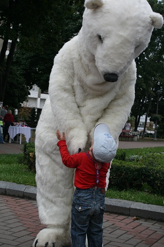 Весело было всем: прохожим – наблюдать, как барышня машет руками рядом с барабанщиками, мне – наблюдать за глазами прохожих, глухим деткам – открывать для себя ощущение музыкальной вибрации, учителям барабанного искусства – вновь и вновь играть на любимых инструментах. На память о фестивале гости от мала до велика фотографировались с аниматорами, надевшими костюмы героев популярных мультфильмов. Когда стемнело, состоялся показ фильма телекомпании «Глас» «Країна в країні» – о глухих людях, которые, преодолев барьер недуга, многое сделали для нашей страны.