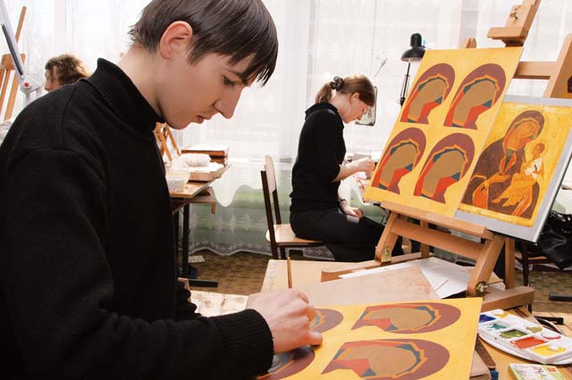 В семинарском домовом храме св. Нестора Летописца ворота алтаря расписаны студентами иконописного отделения