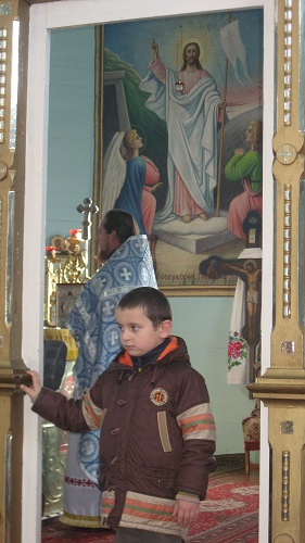 Утро туманное, утро седое, да в придачу еще и холодное. Но, несмотря на погоду, настроение было приподнятое, т. к красота мелькающих золотых деревьев, которые еще не сбросили свою листву и неповторимая живописность украинских полей делали свое дело. Через два часа свернув с трассы и немного проехав по извилистой проселочной дороге, нашему взору открылся красивый голубой храм, кажущийся немного сказочным.