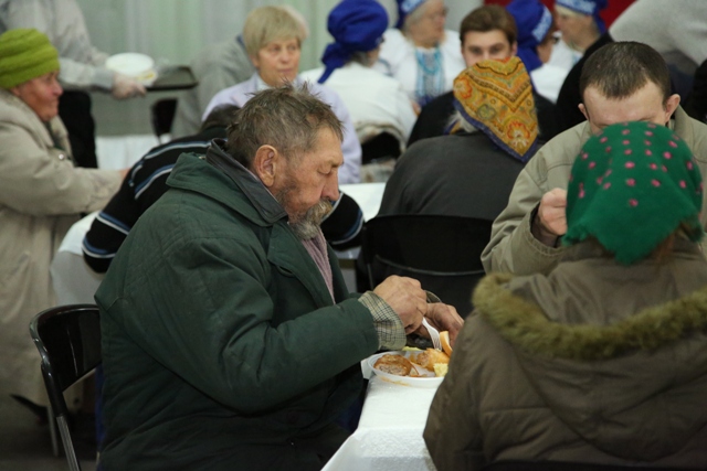 Під час обіду також прозвучали духовні пісні – поминальні псальми від вокального колективу “Соборний благовіст” – “Святий Боже, Святий крепкий буду помирати”, “Три Ангели” та “Сидять люди за столами”, які занурюють слухачів до роздумів, що всі ми не вічні, а вічна лише душа. Під час виступу в залі панувала тиша та роздуми про вічне, також можна було побачити щирі сльози на обличчі глядачів.