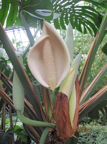 Какая тут красота! Как сказала экскурсовод, нам крупно повезло, потому что в это утро зацвели многие кактусы, которые цветут только один день, также порадовала монстера, которая в это время тоже удивительно цвела. Жаль, что киевляне редко посещают этот чудесный цветочный сад под куполом.