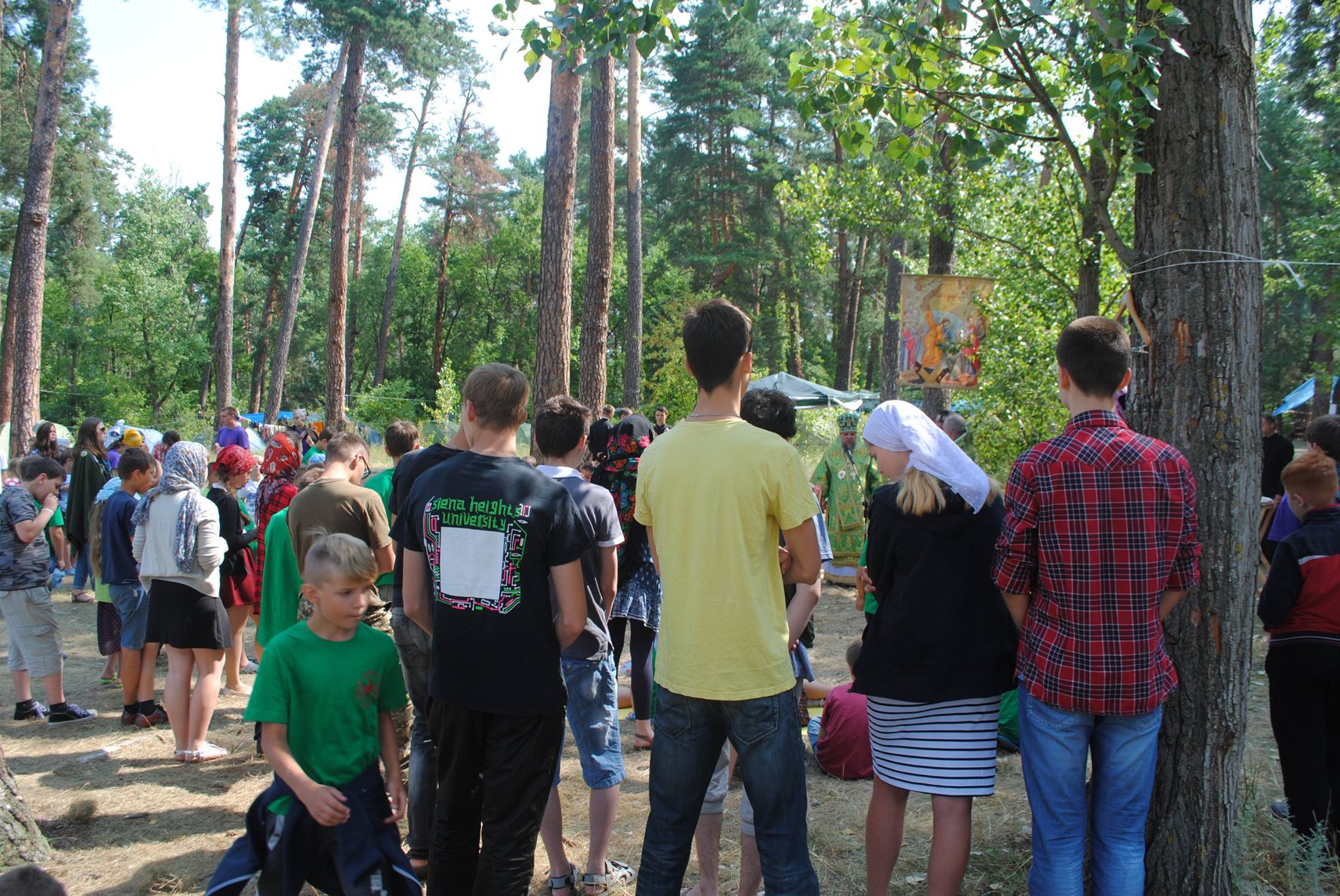В субботу 16-го июля волонтеры-воспитатели, работники лагеря и более 100 детей молились в летний субботний день под открытым небом в красивом лесу.