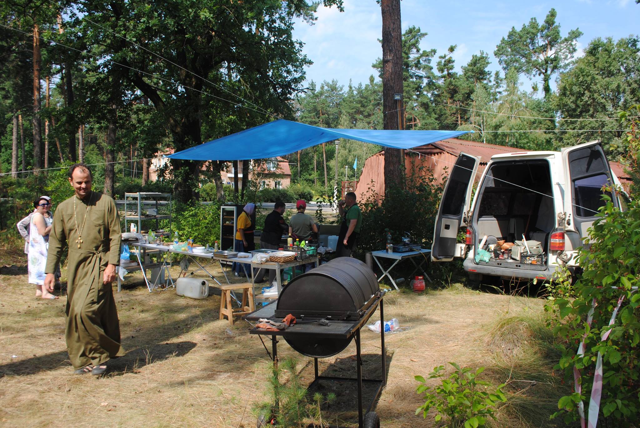 Отець Володимир провел небольшую экскурсию по территории лагеря, рассказал про распорядок дня скаутов, структуру деятельности лагеря, про его тематику, которая каждый год меняется. Сейчас она имеет музыкальную направленность и называется «Богатыри ФМ-2016». Программа предусматривает музыкальные вечера с участием приглашенных профессиональных исполнителей разных жанров, а также музкальные выступления юных скаутов.