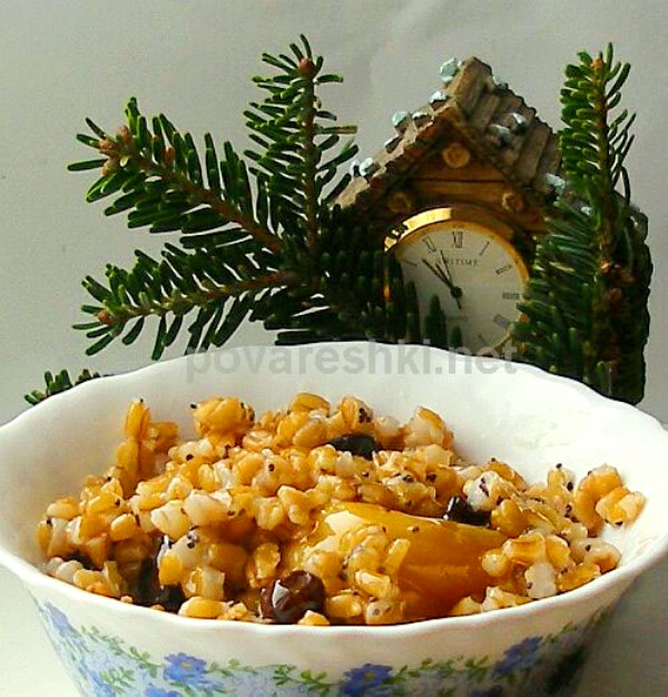 Есть в этот вечер принято сочиво, отчего, собственно, и происходит название «Сочельник». Сочиво — это особое блюдо из размоченного в воде и меду зерен с орехами, а также изюмом и другими фруктами.