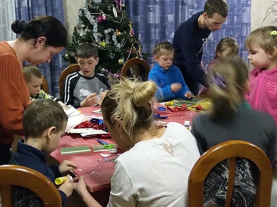 В открытках дети писали о любви к родителям. А украшенные рождественские венки дети вместе с родителями развесили на кухнях в общежитии. Каждый день дети будут заходить туда и вспоминать как для всех создавали красоту своими руками.