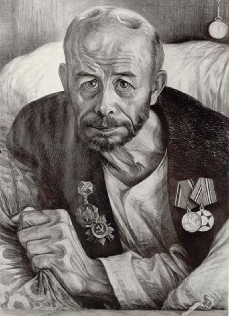 «Рядовой войны». В сибирском городе Омске художник познакомился с Михаилом Гусельниковым, бывшим рядовым 712-й стрелковой бригады, сражавшимся на Ленинградском фронте. 28 января 1943 года во время прорыва блокады Ленинграда солдат получил ранение в позвоночник. С тех пор он прикован к постели.