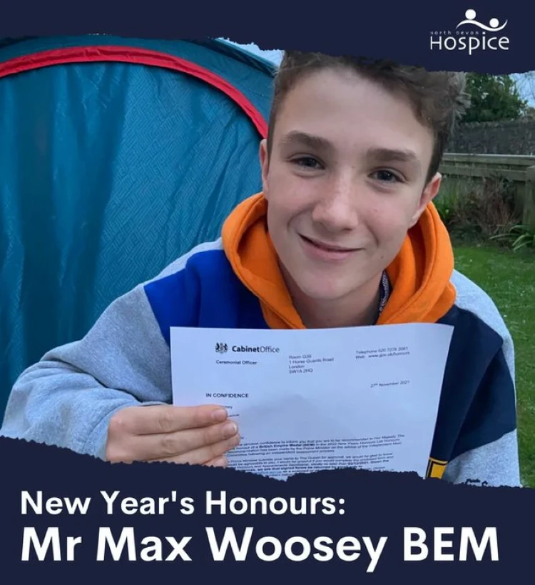 О подвиге Макса Вуси, живущего в маленькой деревушке Браунтон, узнали и в Букингемском дворце. Королеву тронули поступок мальчика и его целеустремленность, и она подписала указ о награждении его медалью Британской империи.