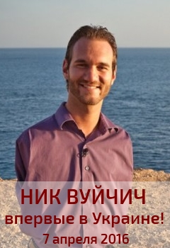 01 апреля 2016Вперше в Україну прибуває людина-легенда Нік Вуйчич зі своєю всесвітньо відомою програмою «Життя без меж»
