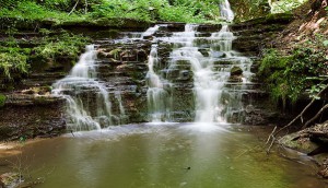 Через один переход по густому лесу подходим к романтичным Русиловским водопадам: всего в трехкилометровом каньоне речки Русиловки, спрятанном в лесной роще, насчитывается 20 водопадов высотой от 1,5 до 12 м, половину водопадов можно осмотреть близко, а есть такие, к которым невозможно подойти из-за крутых стен каньона.