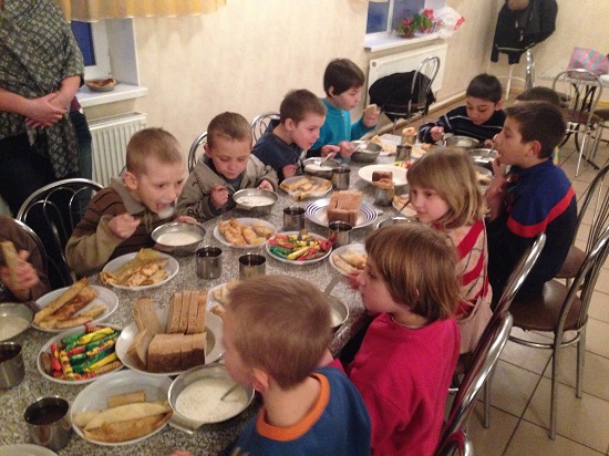 После занятий, которые обычно проводят ребята своим подопечным, старшие дети отправились в столовую готовить праздничный стол. Но сначала стоит все- таки упомянуть, что готовились мы к заговению на Великий пост ещё дома - жарили блины, придумывали творческую и развлекательную программу для школьников. Наши волонтеры, которые не смогли поехать в этот раз с нами, не остались в стороне и передали для детей горки испеченных блинов.