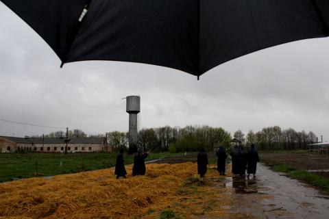 Как в почти все остальные дни мая, и в день молебствия шёл продолжительный дождь. Вот и получилось у сестер освятить большой участок земли за малое количество времени, ведь, по словам строителя и духовника монастыря епископа Обуховского Ионы, Сам Господь окропил те места сельхозугодий, куда не попала при освящении вода.