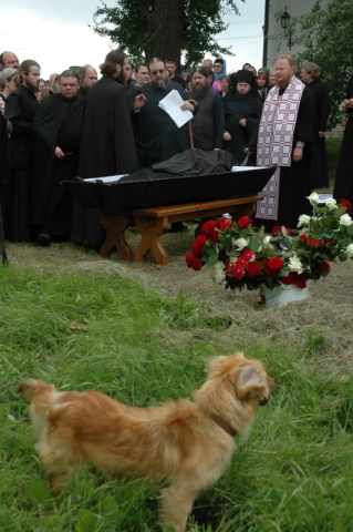 Наместник монастыря епископ Обуховский Иона в сослужении наместника Киевского Архангело-Михайловского Зверинецкого монастыря архимандрита Кассиана (Шостак) и клирика обители протоиерея Василия Высоцкого совершил Божественную литургию, после которой возглавил чин монашеского отпевания новопреставленного.