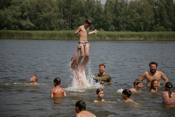 Этим летом организация «Дружина Ильи Муромца» (ДИМ) вместе с Мобильным спасательным центром МЧС на опушке соснового леса неподалёку от речки Козинки провели летний лагерь для 125 детей от 7 до 16 лет. С радушием и заботой в лагерь было принято 13 детей из Донецкой области.